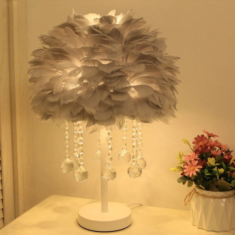 Ajoutez une touche de douceur à votre chambre avec notre Lampe de Chevet en Plume